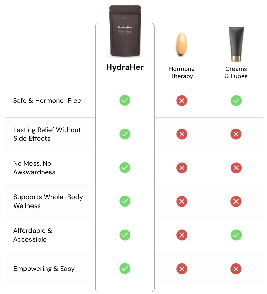HydraHer doesn't just coat the problem on the surface. It works from within to restore hydration and comfort naturally, without hormones, prescriptions, or messy applications. That's why so many women who felt hopeless say this was the first thing that truly worked for them.